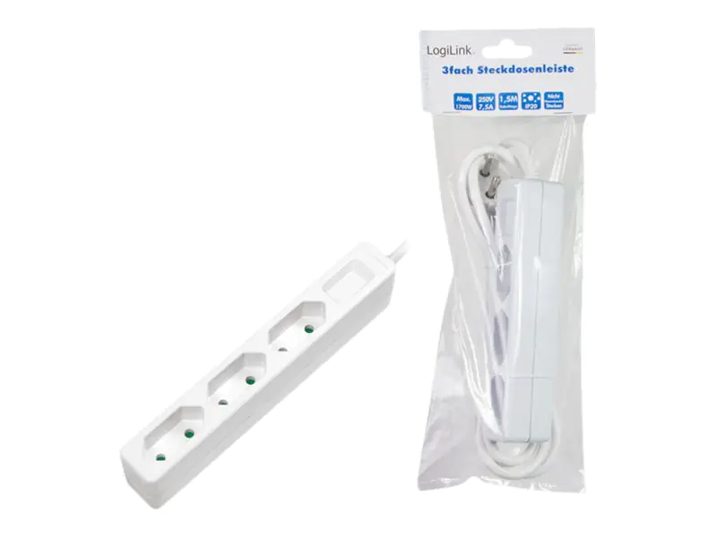 LogiLink - Slim - Steckdosenleiste - Wechselstrom 250 V - 1700 Watt - Ausgangsanschlüsse: 3 (3 x Eurostecker) - 1.5 m Schnur - weiß