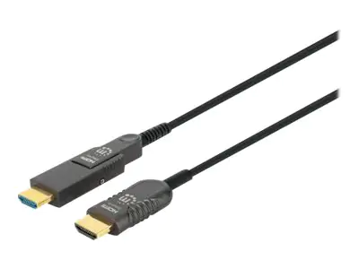 Manhattan HDMI to Micro HDMI Plenum-Rated Cable, 4K@60Hz (Premium High Speed), 30m, Active, Detachable HDMI Male (Type A), Male to Male, Black, Gold Plated Contacts, Lifetime Warranty, Polybag - Highspeed - Kit HDMI-Kabel mit Ethernet - 30 m - Hybrid Kupf