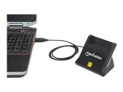 Manhattan USB-A Smart/SIM Card Reader, 480 Mbps (USB 2.0), Desktop Standing, Friction Type compatible, Hi-Speed USB, Cable 86cm, Black, Three Year Warranty, Blister - SmartCard-Leser - USB 2.0