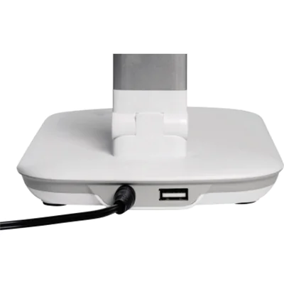 Kompaktes LED-Modell für Preisbewusste. Mit integriertem 5 V, max. 500 mA USB-Anschluss zum Aufladen von z. B. Smartphones. 5-Stufen-Dimmer mit Touchfeld-Bedienung am Leuchtenfuß. Beleuchtung im Fuß zeigt in eingeschaltetem Zustand die Dimmstufe. Platzsparend und handlich. Stabiler Standfuß mit Beschwerungseinlage und schreibtischschonender Unterlage. 80 % weniger Energieverbrauch der LED im Vergleich zu einer Glühlampe. Technisches Sicherheitskonzept Made by MAUL. Dieses Produkt wird verkauft mit einer austauschbaren Lichtquelle der Energieeffizienzklasse E.