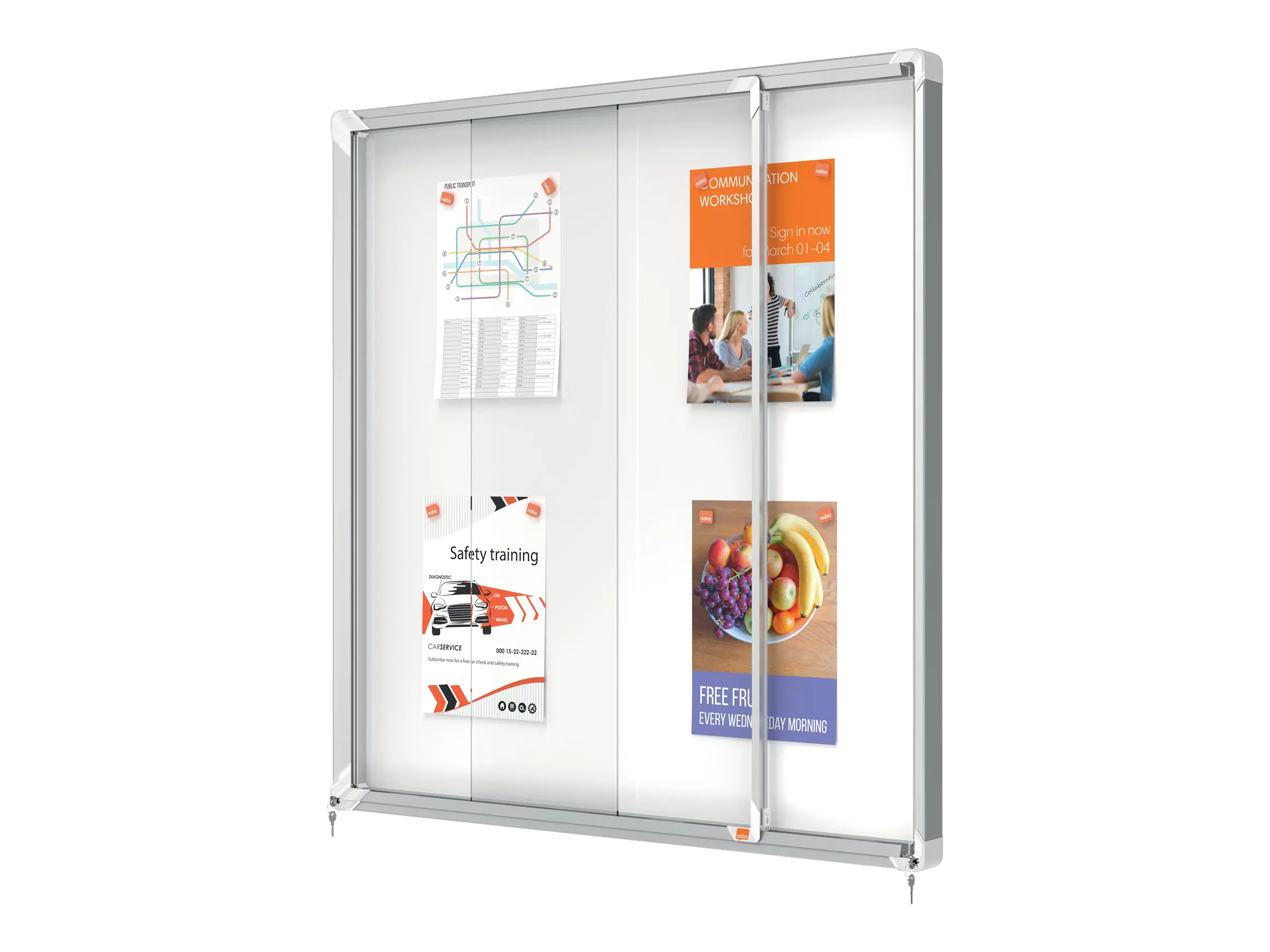 Nobo Schaukasten 1902570 97,2x100x 5,4cm innen 12 x DIN A4 weiß/silber
