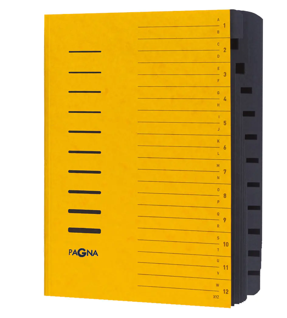Pagna Ordnungsmappe 12 Fächer. Format: A4, Produktfarbe: Schwarz, Gelb, Ausrichtung: Porträt. Breite: 245 mm, Tiefe: 5 mm, Höhe: 320 mm