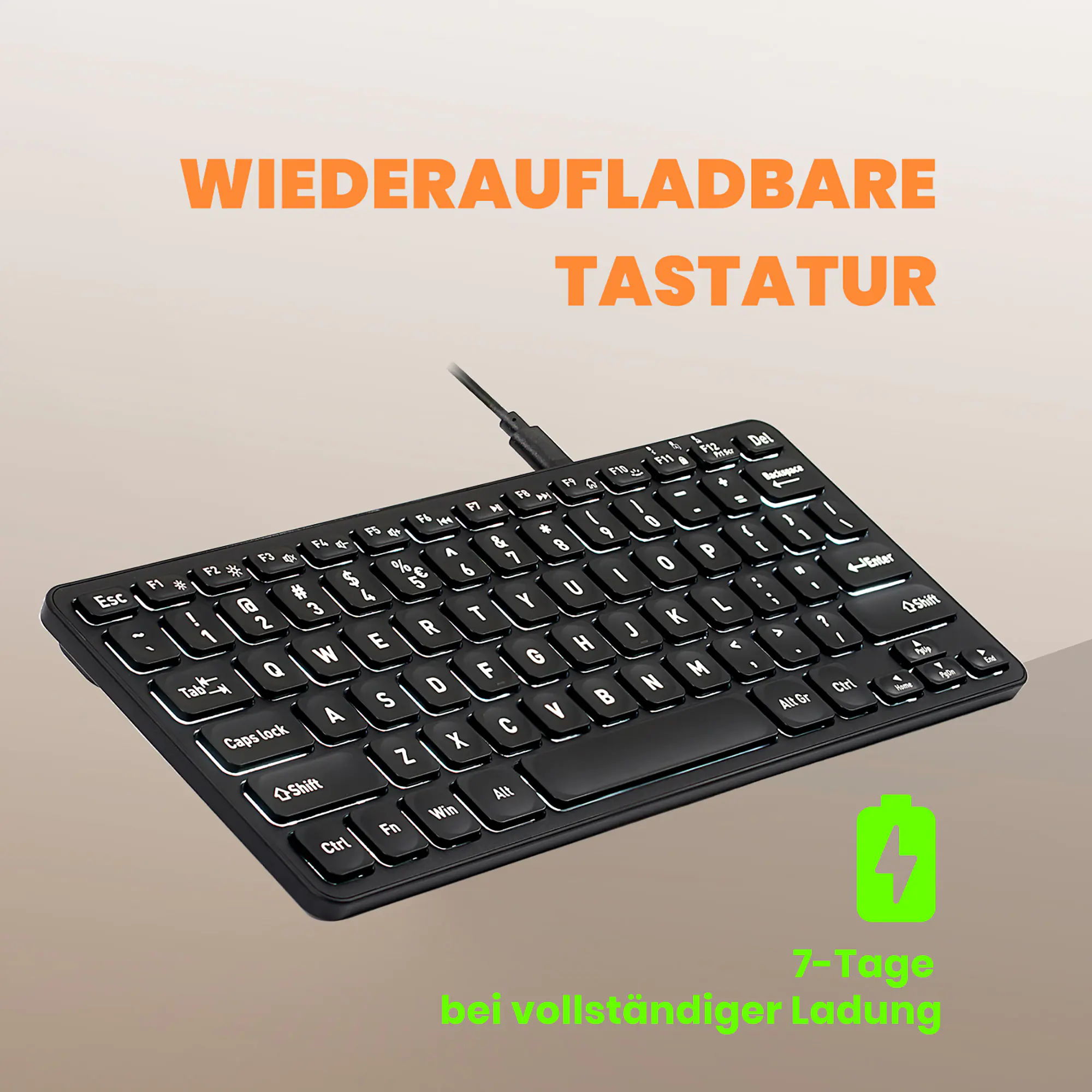 Perixx PERIBOARD-732B DE Mini-Tastatur Wireless mit Hintergrundbeleuchtung - Tastatur - QWERTZ