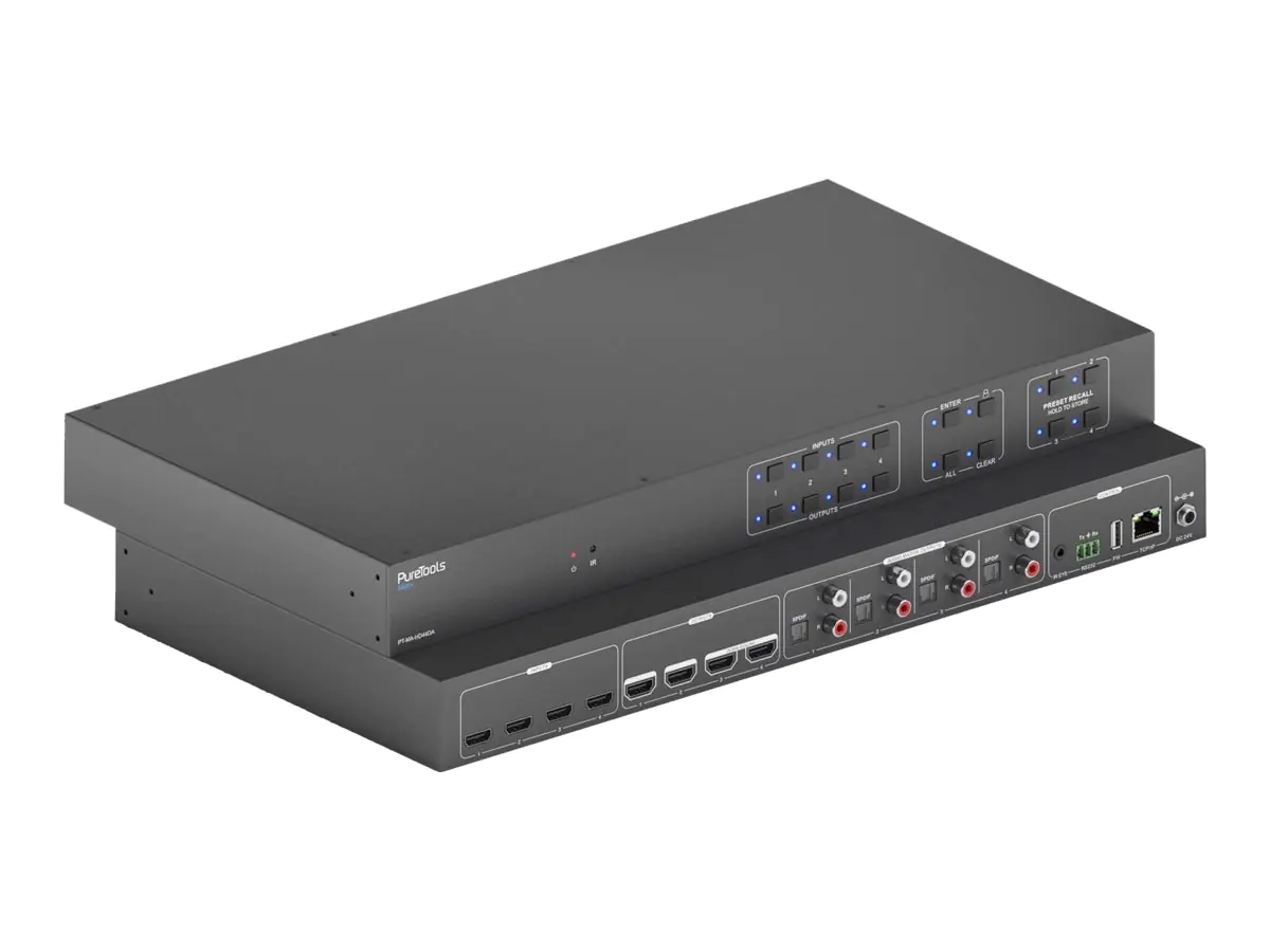 Verteilung und Steuerung: PureLink bietet auch fortschrittliche Lösungen für die Verteilung und Steuerung von AV-Signalen. Dazu gehören HDMI-Splitter, -Extender und -Matrix-Switches, die es ermöglichen, Videoinhalte flexibel an mehrere Displays zu senden oder verschiedene Quellen an ein Display zu routen. Diese Produkte sind ideal für Konferenzräume, Digital Signage und komplexe AV-Installationen.