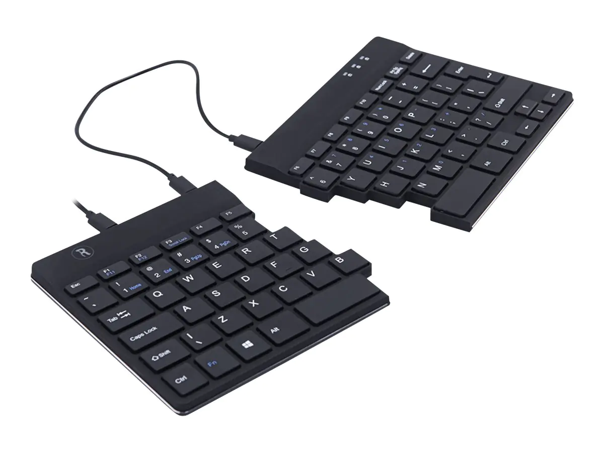 Das kompakte Design sorgt dafür, dass die Hände beim gleichzeitigen Gebrauch von Tastatur und Maus stets innerhalb der Schulterbreite bleiben. Die beiden Teile können in jede gewünschte Position gebracht werden. Dieses einzigartige Design vermeidet eine Reichbewegung des Arms und sorgt für eine natürliche, entspannte Position der Schulter, des Ellenbogens sowie des Handgelenks. Dank des leichten Tastenanschlags herrscht beim Tippen eine minimale Muskelspannung. Das dünne Design sorgt für eine entspannte, flache Haltung der Hände und Handgelenke beim Tippen. Die Tastatur ist leicht, und da sie aus zwei Teilen besteht, passt sie einfach in jede Laptoptasche.