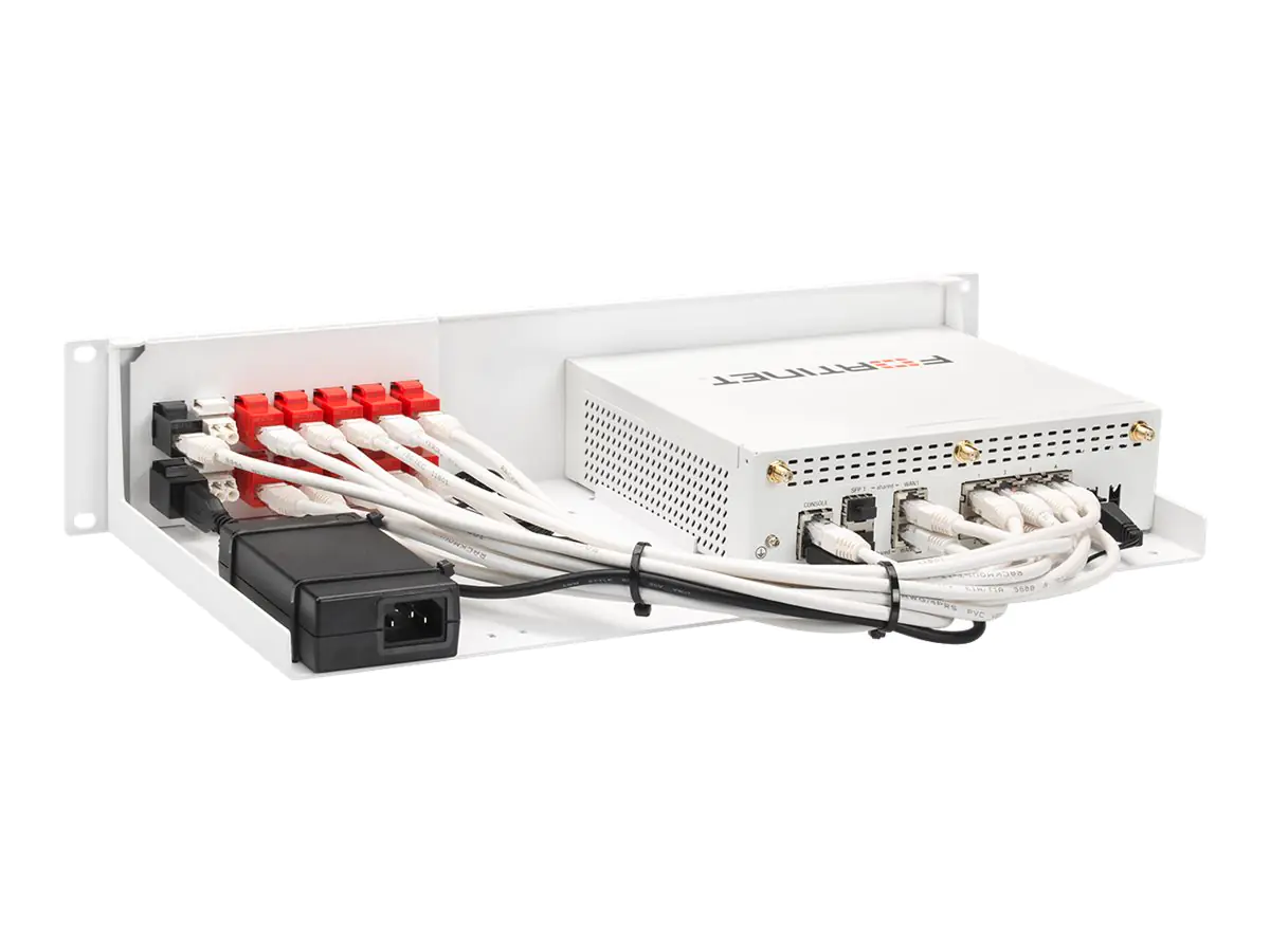 Mit dem RM-FR-T18 können Sie Ihre Fortinet Desktop Gerät auf ein 19-Inch-Gestell montieren. Das Gestell ist speziell auf die aufgelisteten Modelle zugeschnitten, um perfekte Passform zu garantieren. Die Verbindungen befinden sich an der Vorderseite, um den Zugang zu erleichtern. Die Stromversorgung ist fixiert, um ungewollte Stromausfälle zu vermeiden.