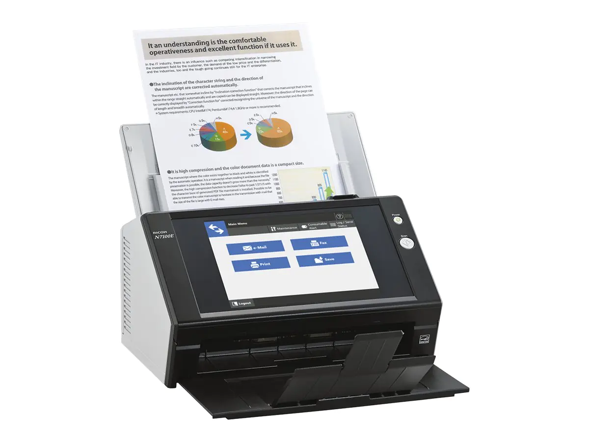 Ricoh Image Scanner N7100E - Dokumentenscanner - Dual CIS - Duplex - 216 x 355.6 mm - 600 dpi x 600 dpi - bis zu 25 Seiten/Min. (einfarbig) / bis zu 25 Seiten/Min. (Farbe) - automatischer Dokumenteneinzug (50 Blätter) - bis zu 4000 Scanvorgänge/Tag - Giga