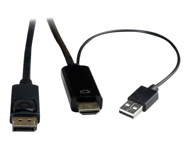 Roline - Videokabel - HDMI, USB (nur Strom) männlich zu DisplayPort männlich - 2 m - abgeschirmt - Schwarz - unterstützt 4K 60 Hz (3840 x 2160)