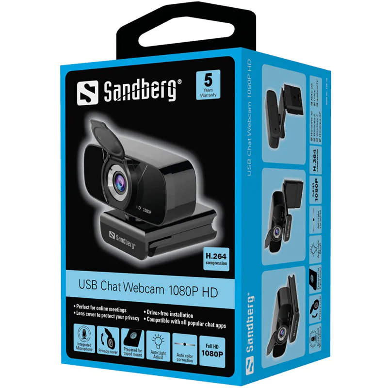 Die Sandberg USB Chat Webcam 1080P HD liefert Ihnen dank der Full-HD-Auflösung von 1080P scharfe, klare Bilder. Es funktioniert sofort ohne Treiberinstallation. Die Kamera ist zudem mit einem Mikrofon ausgestattet.