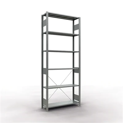 Aussteifung durch Kreuzstrebe. Einfaches Ausrichten des Regals durch Spannschlösser an den Kreuzstreben.Ideal zum Aufbau von Regalzeilen vor Wänden und als Doppelregal Rücken an Rücken. Fachböden im Raster in der Höhe verstellbar. Geeignet zum Bau mehrstöckiger Regalanlagen. Schneller Aufbau durch ein faches Stecken der Fachböden.