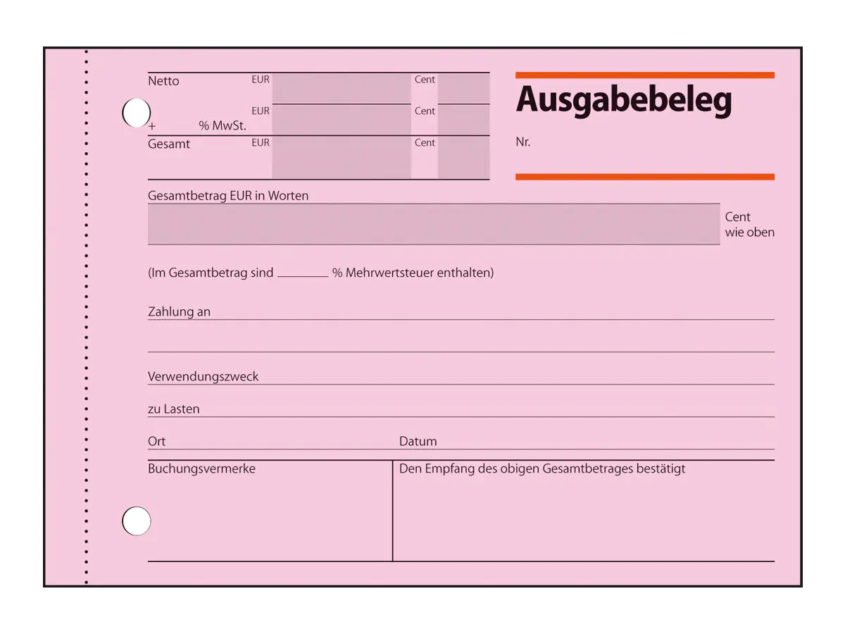 Ausgabebeleg mit Sicherheitsdruck. Mit Empfangsbestätigung.