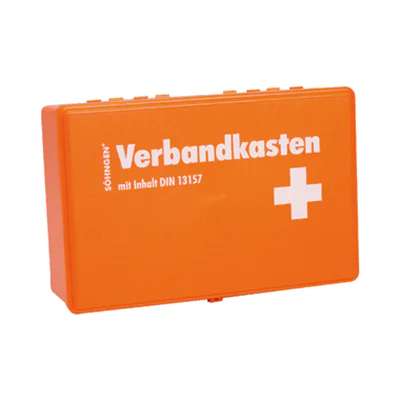 Verbandkasten mit lang nachleuchtenden Permalight®-Elementen. Innen mehr Übersicht durch Extra-Tray für Kleinteile. Sterile Verbandstoffe von SÖHNGEN® sind mit dem Herstellungsdatum und einem Haltbarkeitsdatum von 20 Jahren ab Herstellung versehen. Inhalt: 2 x PE-Druckverschlussbeutel 300 x 400 x 0,05 mm, 1 x SIRIUS® Rettungsdecke 210 x 160 cm, 1 x Verbandtuch DIN SO 60 x 80 cm, 2 x aluderm® Augenkompresse DuOcul, 1 x aluderm® Verbandpäckchen DIN klein, 3 x aluderm® Verbandpäckchen DIN mittel, 1 x aluderm® Verbandpäckchen DIN groß, 3 x DERMOTEKT® Kompresse 10 x 10 cm à 2 Stück, 2 x WS-Fixierbinde 4 m x 6 cm, 2 x WS-Fixierbinde 4 m x 8 cm, 1 x Vliestücher 200 x 300 mm à 5 Stück, 2 x Medizinische Mundschutzmaske EN 14683-2019 IIR einzeln, 1 x SÖHNGEN®-Pore 5 m x 2,50 cm, 1 x Pflaster-Schnellverband-Set 10 x 6 cm 12 Stück, 1 x aluderm®-aluplast Sortiment klein, 4 x Feuchttuch zur Reinigung unverletzter Haut einzeln, 2 x Dreiecktuch V SO RD, 1 x Handschuh-Set mit 4 Stück Vinyl groß, 1 x Kälte-Sofortkompresse klein ab 200 cm², 1 x Erste Hilfe-Kleiderschere 19 cm kniegebogen st-st, 1 x Anleitung Erste-Hilfe SO Sofortmaßnahmen am Unfallort.