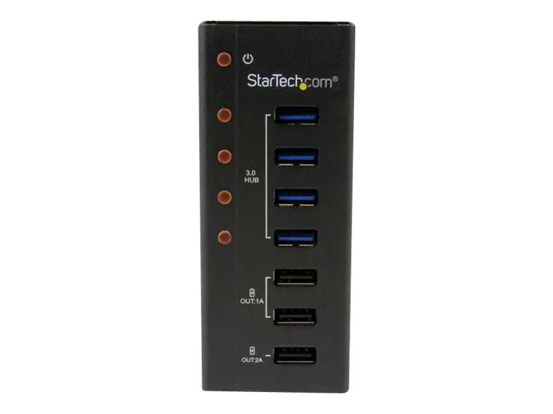 | Produktbeschreibung | StarTech.com 4 Port USB 3.0 Hub plus 3 Ladeanschlüsse (2x 1A & 1x 2A) - Metallgehäuse zur Wandmontage - Hub - 4 Anschlüsse | |||