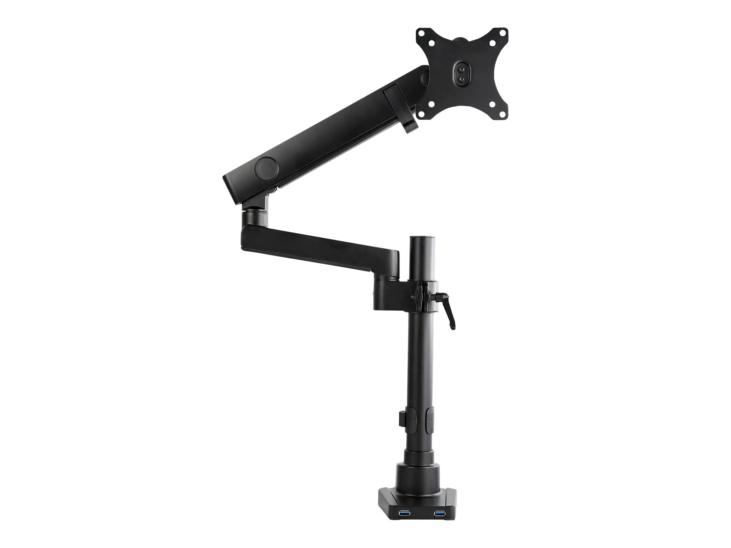 StarTech.com ARMPIVOT2USB3 Monitorhalterung (Gelenkarm, 34-Zoll-VESA-Monitor, Premium 2x USB 3.0-Hub mit Kabelmanagement) - Befestigungskit (Gelenkarm, Spannbefestigung für Tisch, Kabeldurchführungsklemme) - für Monitor - robustes Aluminium - Schwarz - Bildschirmgröße: 43.2-86.4 cm (17"-34") - Tischmontage