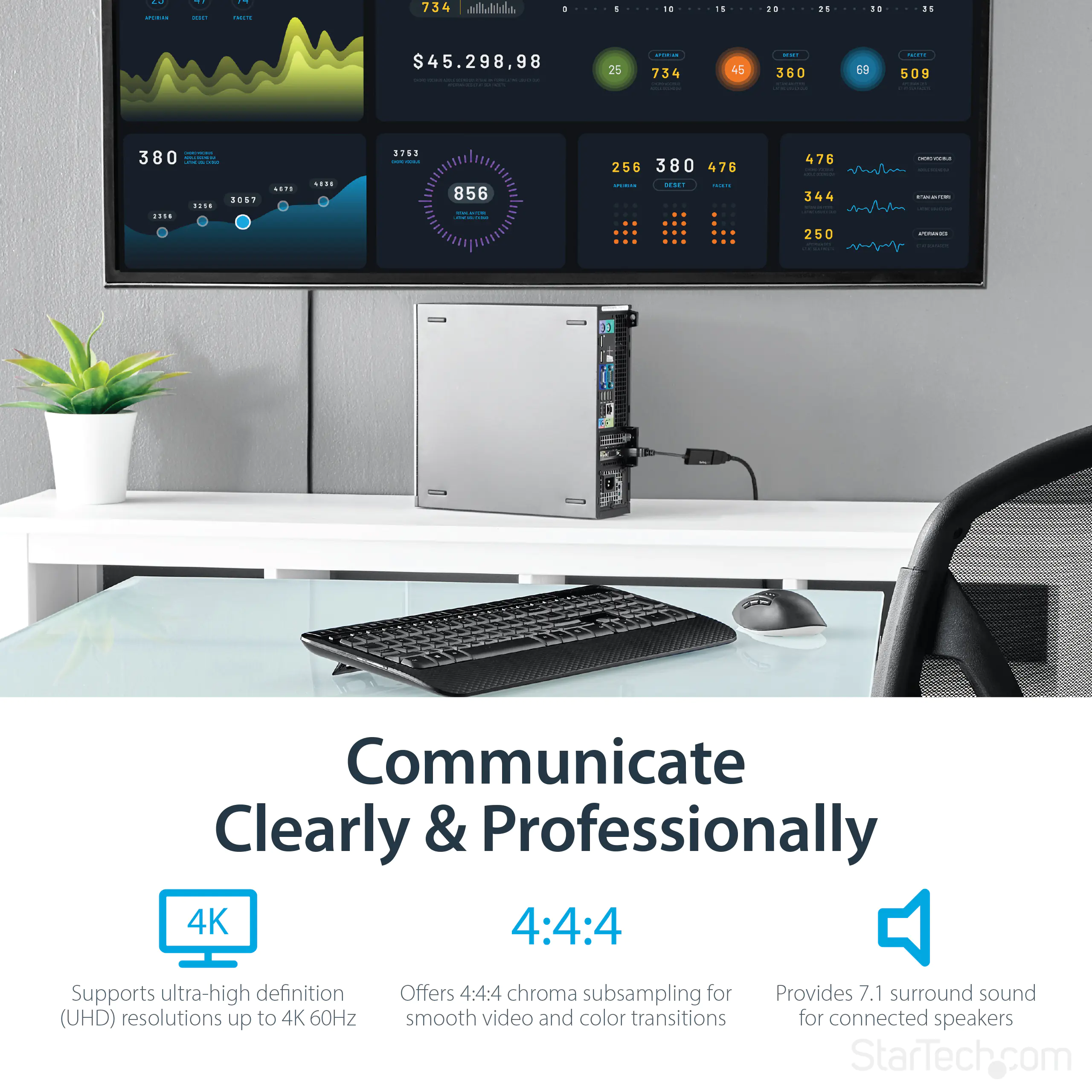 Mit diesem Adapter nutzen Sie die eingebauten Videofunktionen Ihrer DisplayPort -Verbindung zur Ausgabe der erstaunlichen UHD-Qualität auf Ihrem 4K 60 Hz-Display. Dies erleichtert Ihnen die gleichzeitige Nutzung mehrerer Monitore bei der Arbeit mit ressourcenintensiven Anwendungen.