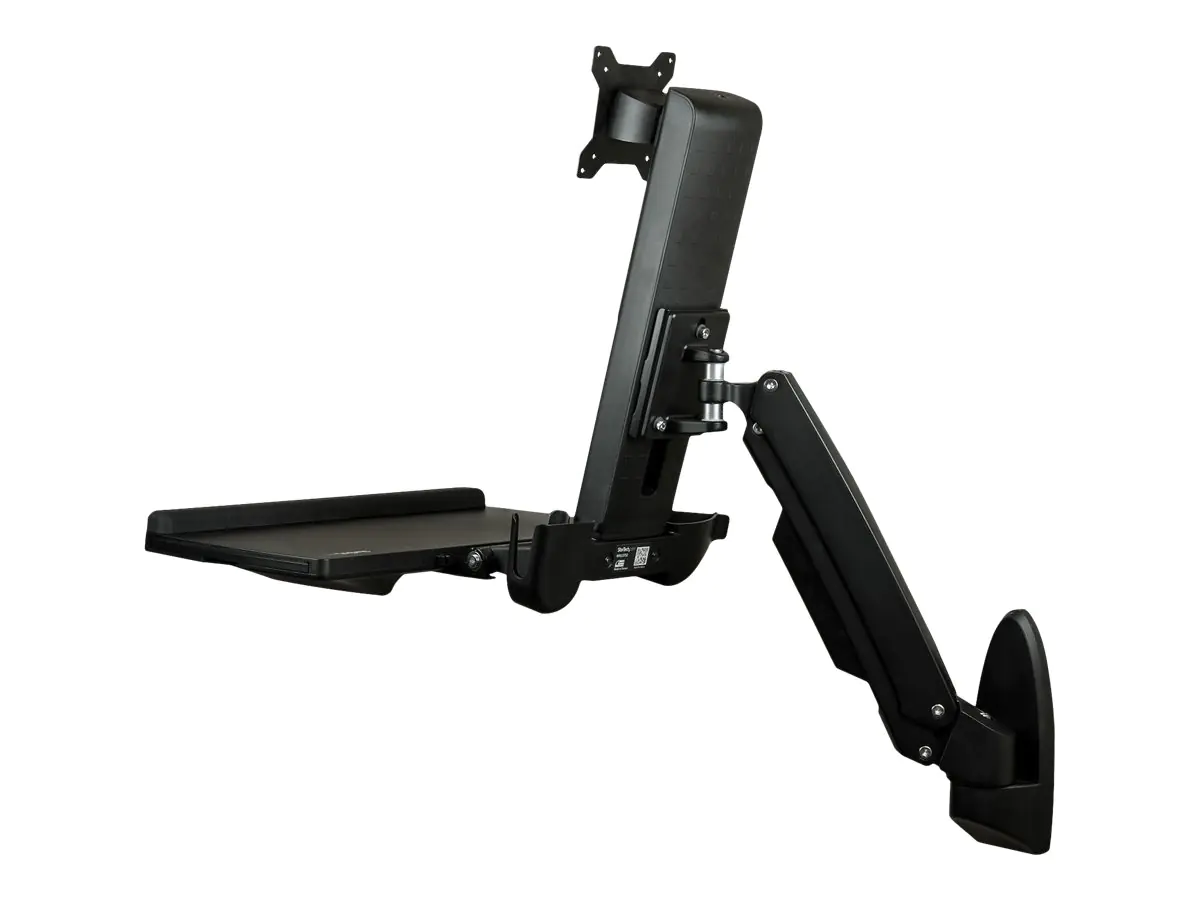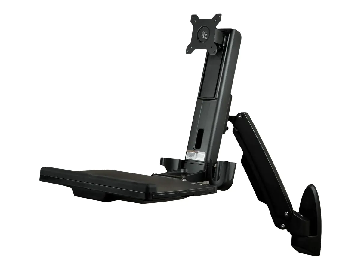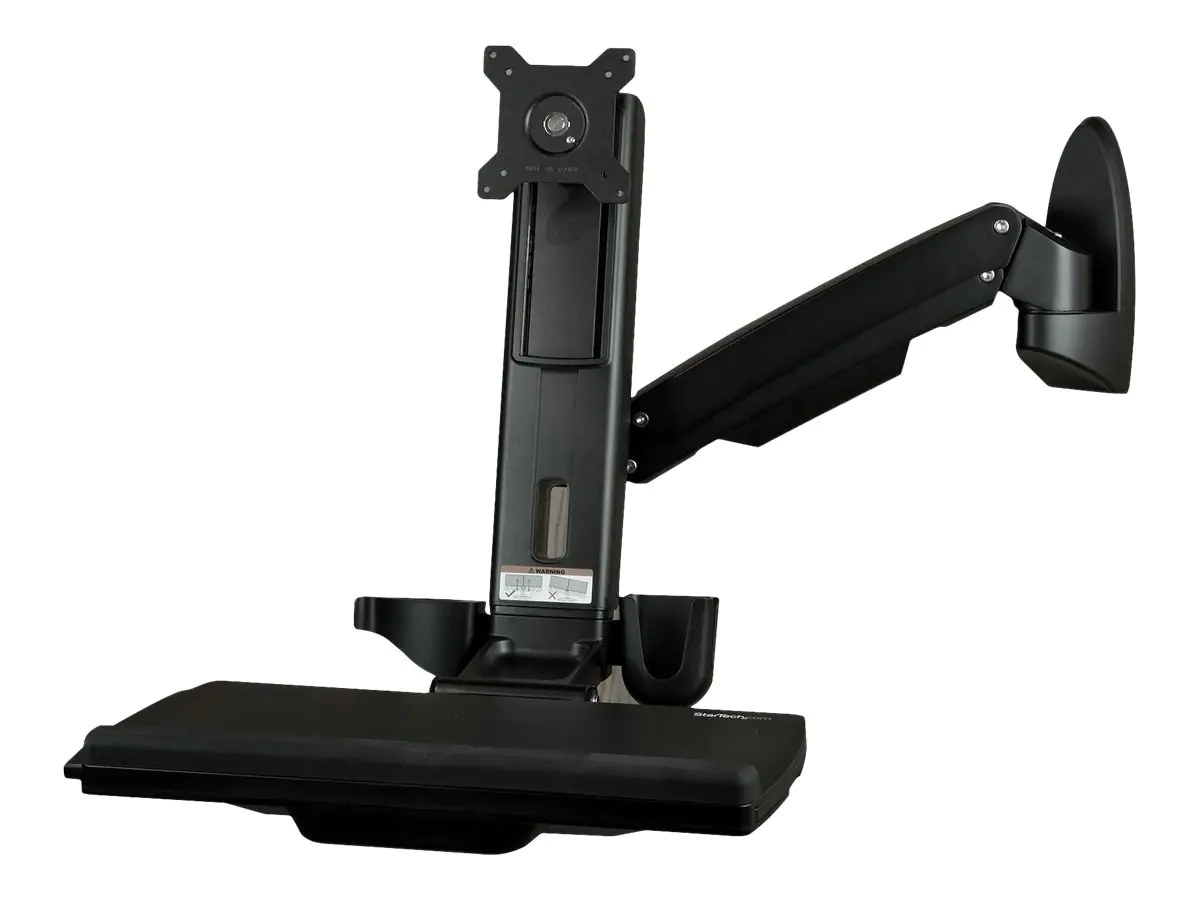 StarTech Wandmontage Sitz-/ Steh Workstation - 1 Monitor bis zu 24" - VESA - Höhenverstellbarer Ergonomischer Schreibtisch - Befestigungskit (Wandplatte, Spalte, Tastatur-Tablett, Monitorarm) - für Monitor - Kunststoff, Aluminium, Stahl - Schwarz - Bildsc