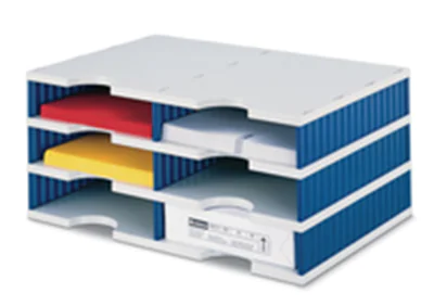 Diese stabile Papier- und Dokumentenablage lässt sich sehr vielfältig einsetzen, sei es freistehend auf einem Schreibtisch, in Regalen oder Schränken oder auch als kleine Drucker- oder Faxstation. Zwei verschiedene Fachhöhen - Standard und Jumbo - stehen zur Wahl. Sie lassen sich problemlos miteinander kombinieren. Die Basis-Einheiten können jederzeit mit weiteren Fächern aufgestockt werden. Teile einfach ohne Werkzeug aufeinderstecken - fertig! Sehr präzise und saubere Verarbeitung.