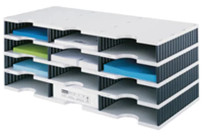 Stabile und flexible Papier- und Dokumentenablage. Vielfältiger Einsatz - verwendbar freistehend auf dem Tisch, Regalen und Schränken oder auch als kleine Drucker- oder Faxstation. Jederzeit erweiterbar durch einfache Steckmontage.