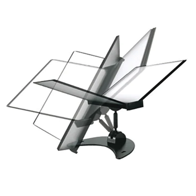 Als Tisch- und Wandmodul im Hoch- und Querformat einsetzbar. Verstellung durch Druckknopfmechanik.