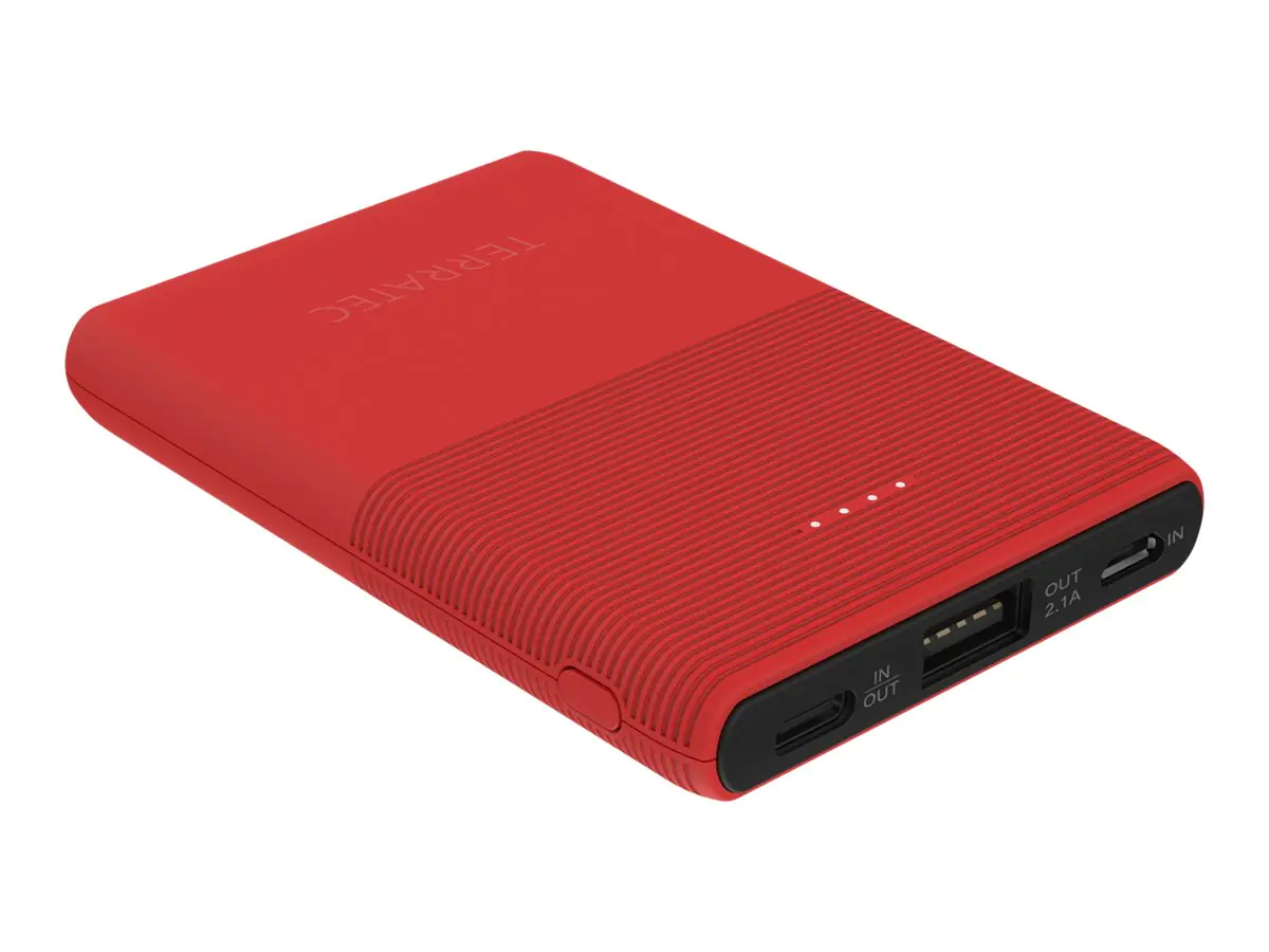 TERRATEC P50 Pocket - Powerbank - 5000 mAh - 2.1 A - 2 Ausgabeanschlussstellen (USB, USB-C) - Poppy Red