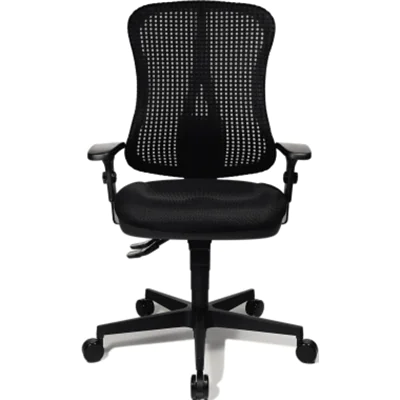 Klassischer Komfort-Drehstuhl mit atmungsaktiver Netz-Rückenlehne. Stufenlose Sitzhöhenverstellung mit Toplift. Ergonomische taillierte Rückenlehne mit integrierter Lendenwirbelstütze. Körpergewichtseinstellung individuell einstellbar. Neues Design-Fußkreuz, ausgerüstet mit lastabhängig gebremsten Sicherheitsdoppelrollen.