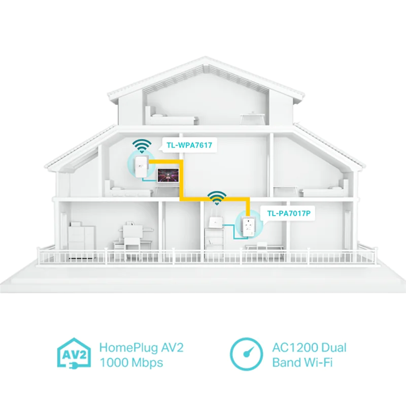 TP-Link TL-WPA7617 KIT V1 Wi-Fi Kit - Powerline Adapterkit - GigE, HomePlug AV (HPAV), HomePlug AV (HPAV) 2.0, IEEE 1901 - 802.11a/b/g/n/ac - Dual-Band - an Wandsteckdose anschließbar - mit TP-Link TL-PA7017P