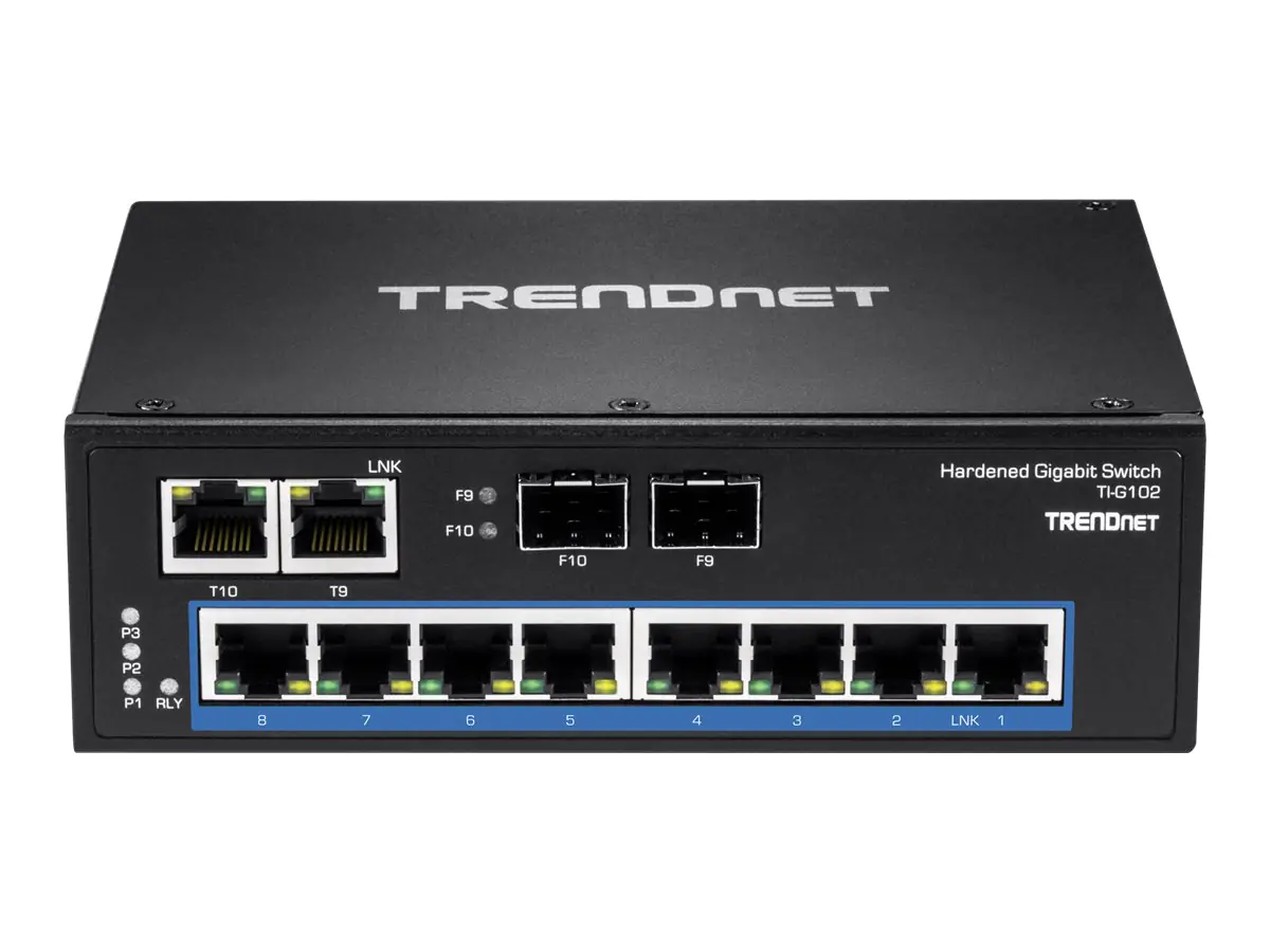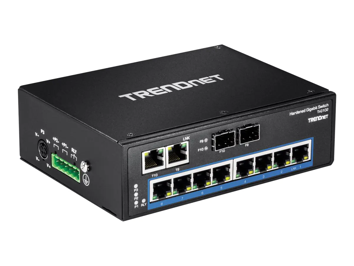 TRENDnet TI-G102 - Switch - unmanaged - 8 x 10/100/1000 + 2 x Kombi-Gigabit-SFP - an DIN-Schiene montierbar, wandmontierbar - Gleichstrom