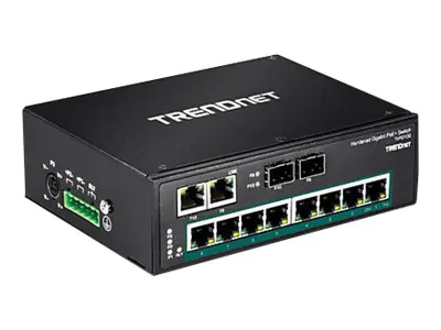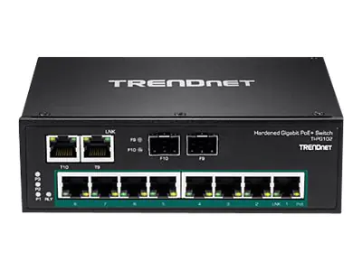 Der 10-Port gehärtete industrielle Gigabit-PoE+-DIN-Rail-Switch von TRENDnet, Modell TI-PG102, verfügt über acht dedizierte PoE+-Gigabit-Ports mit einer Gesamtleistung in Höhe von 240 W sowie zwei Gigabit-RJ-45/SFP-Shared-Ports. Benutzer können acht PoE+-Geräte an den Switch anschließen, und das Gerät bietet noch zwei weitere Gigabit-Ports für zusätzliche Netzwerkverbindungen. Der Switch verfügt über ein Metallgehäuse mit Schutzklasse IP30 und wurde entwickelt, um starken Vibrationen und Schlägen standzuhalten bei Betrieb in einem großen Temperaturbereich für industrielle Umgebungen.