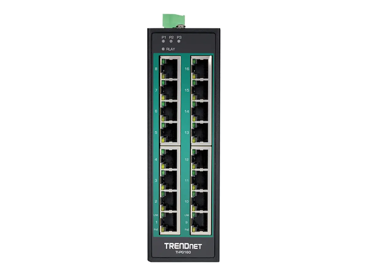 TRENDnet TI-PG160 - Switch - unmanaged - 16 x 10/100/1000 (PoE+) - an DIN-Schiene montierbar, wandmontierbar - PoE+ (240 W) - TAA-konform