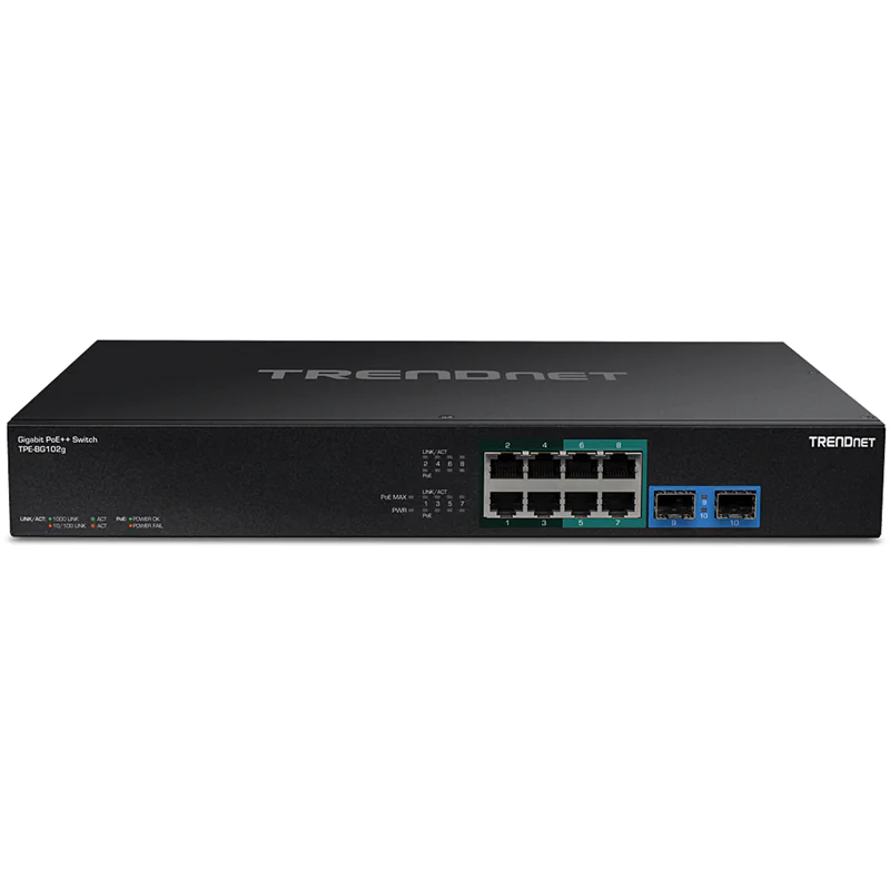 TRENDnet TPE BG102G - Switch - unmanaged - 8 x 10/100/1000 (PoE++) + 4 x 10/100/1000 (PoE+) + 2 x SFP - an Rack montierbar - PoE++ (240 W) - AC 100 - 240 V - TAA-konform