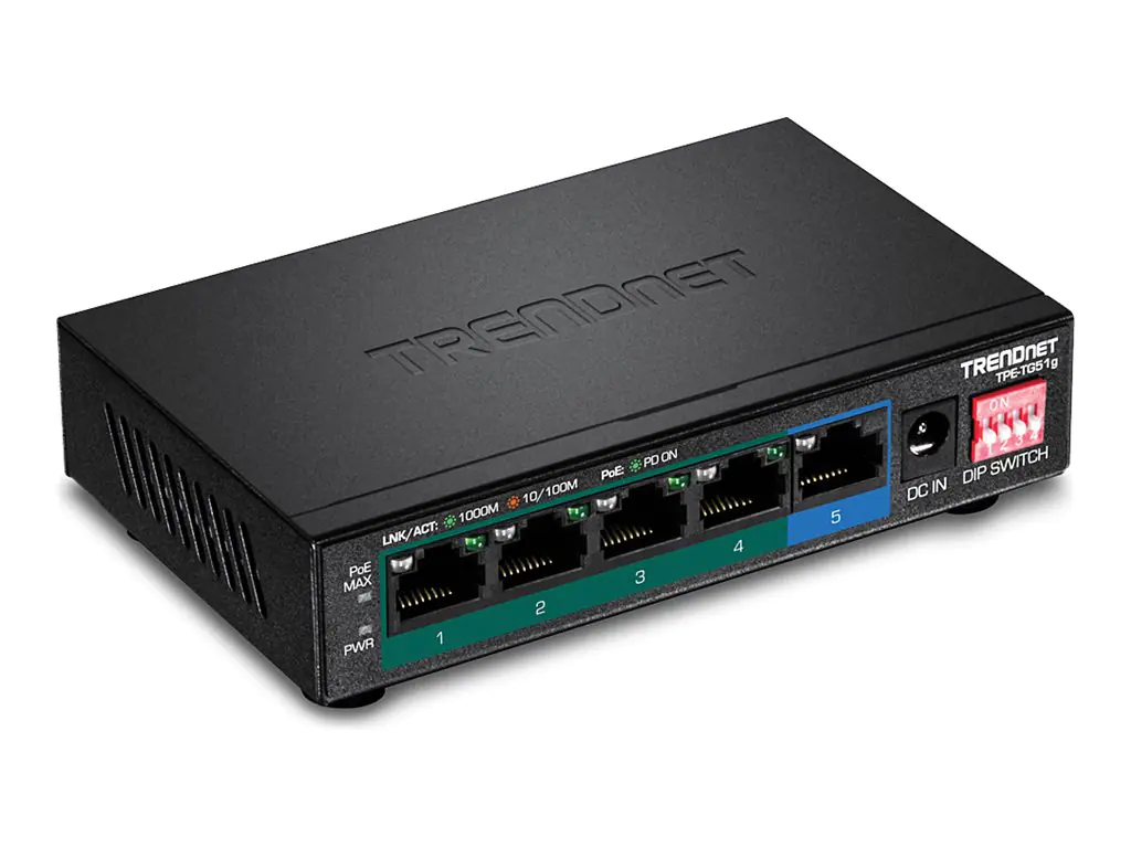 | TRENDnet TPE-TG51g - Switch - unmanaged - 4 x 10/100/1000 (PoE+) | ||||