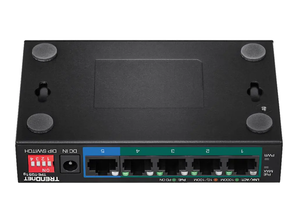 TRENDnet TPE-TG51g - Switch - unmanaged - 4 x 10/100/1000 (PoE+) + 1 x 10/100/1000 - Desktop, wandmontierbar - PoE+ (60 W) - TAA-konform