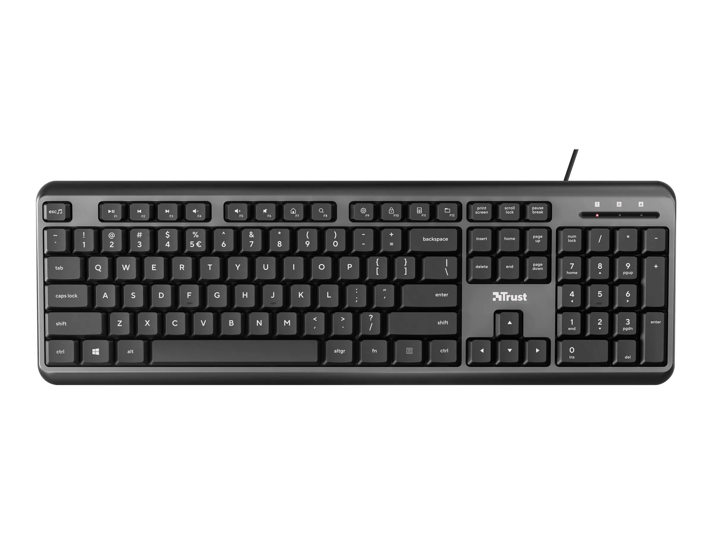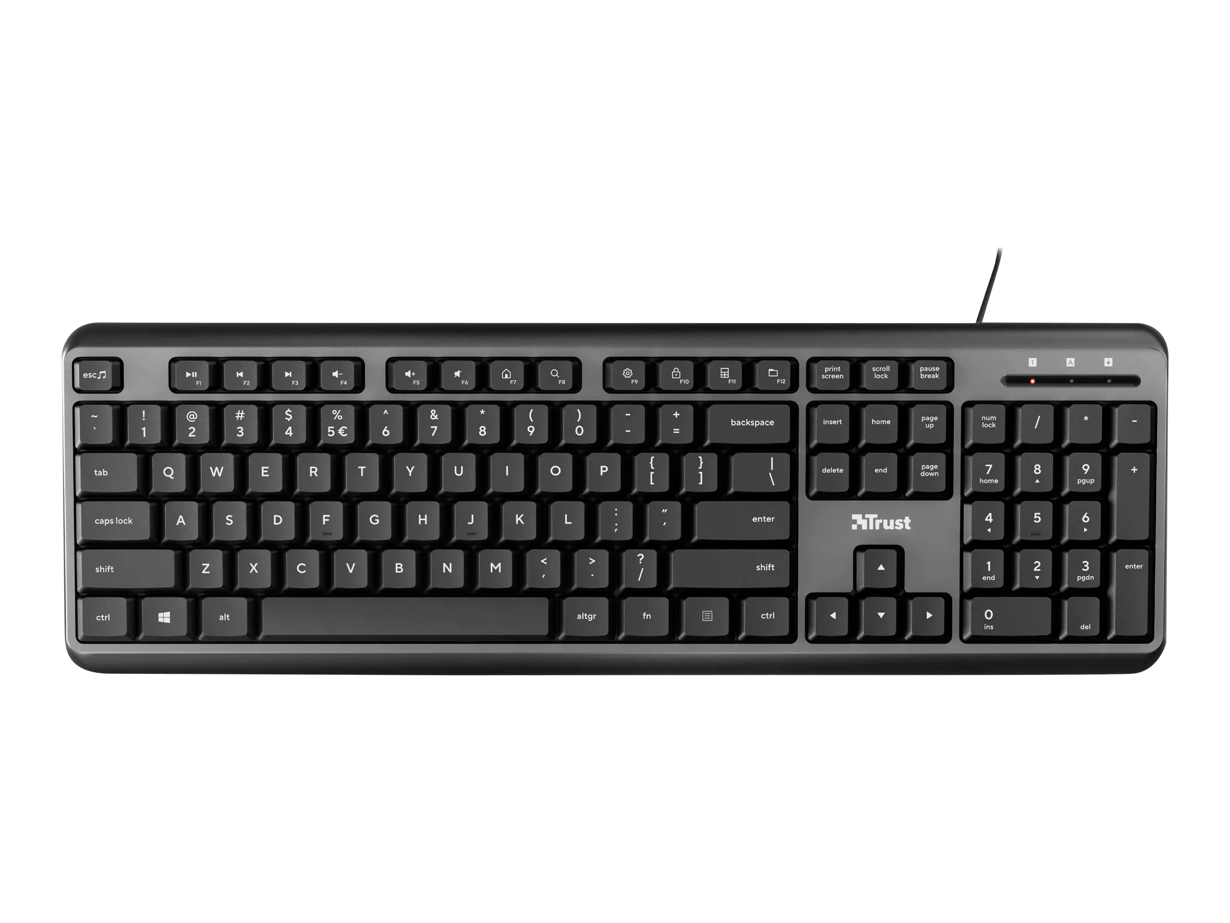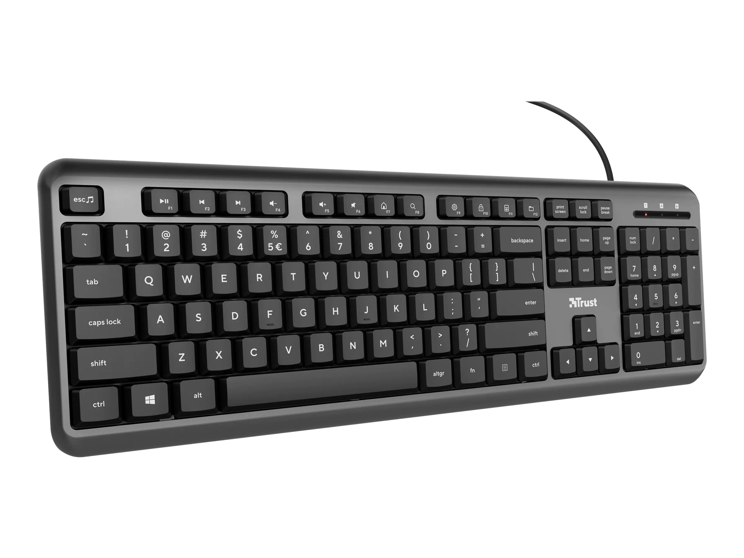 Die kompakte Trust Ody Kabeltastatur mit originalgroßem Layout und flachen Tasten für weiches, müheloses Tippen ist eine ausgezeichnete Ergänzung für jedes Homeoffice. Bereit für die Arbeit?
