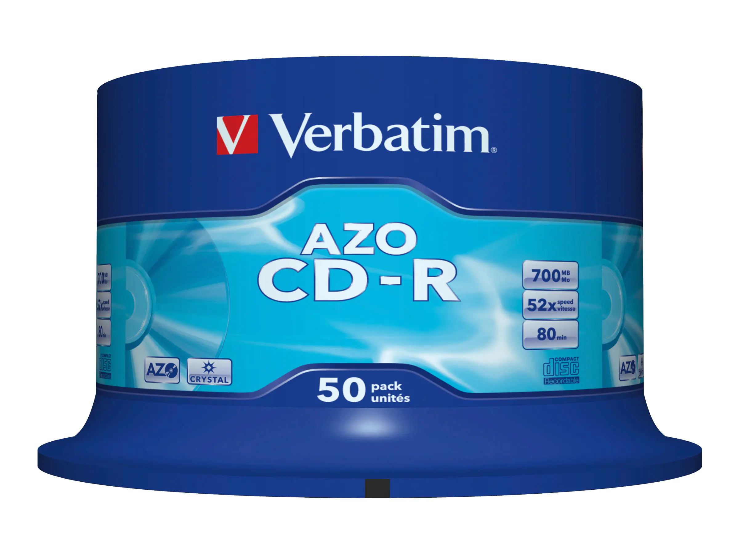 Die CD-R ist eine beschreibbare Disc. Sie erfüllt die Standards für Computersicherheit des Orange Book Teil II Version 3. Die "mechanischen Spezifikationen" eines Verbatim-Datenträgers sind extrem präzise. Deshalb kann der beschriebene Datenträger von vielen Laufwerken gelesen werden. Auch beim Beschreiben haben die Discs von Verbatim höchste Kompatibilität mit den meisten Laufwerken und Geschwindigkeiten. Die Crystal-Oberfläche ist eine Disk mit einer kristallklaren Lackierung, die extrastarken Datenträgerschutz bietet. Beschreibbar mit einem CD/DVD-Marker.