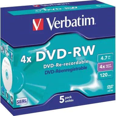 | Verbatim DataLifePlus - 5 x DVD-RW - 4.7 GB 4x - Jewel Case (Schachtel) | ||||