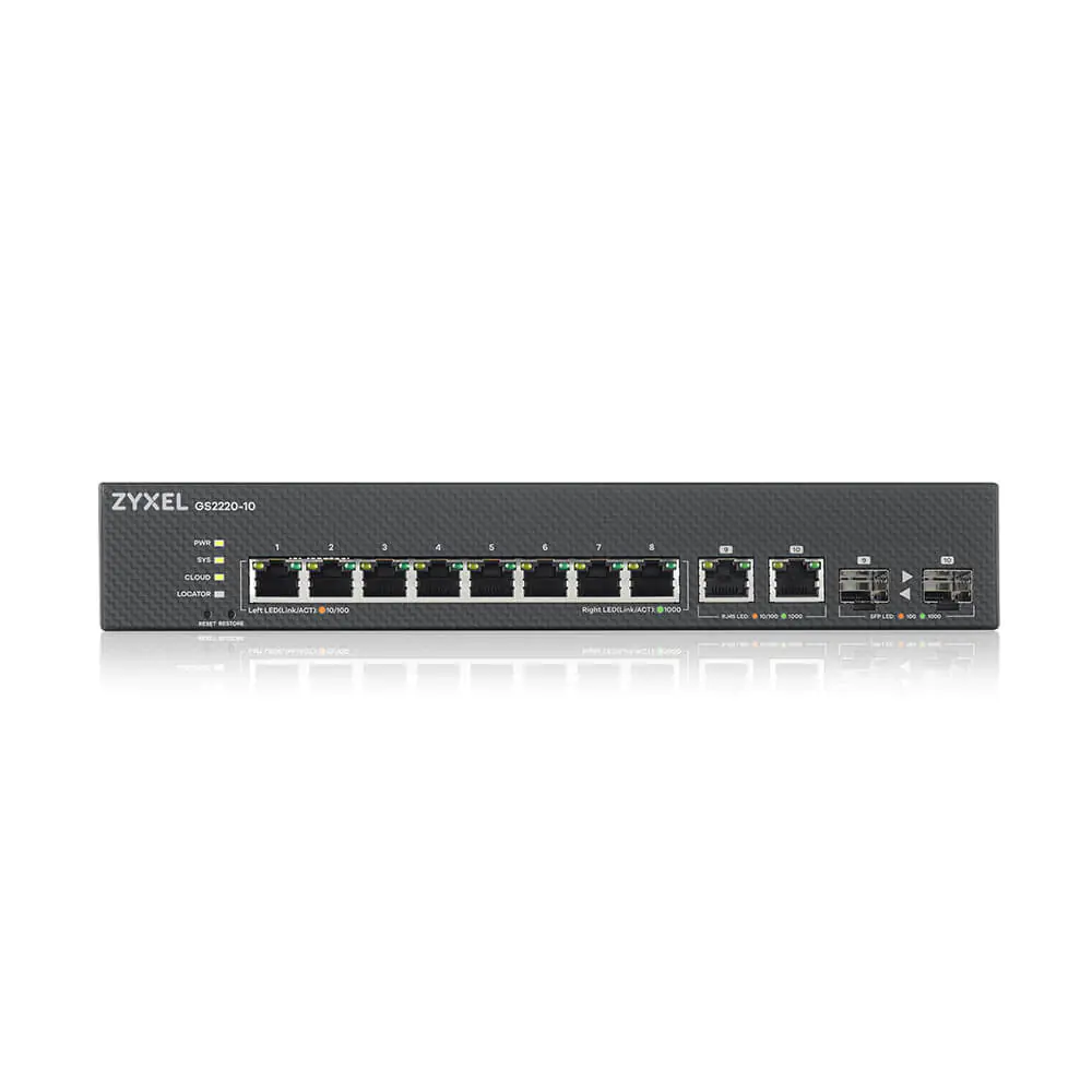 | ZyXEL GS2220-10 - Switch - managed - 8 x 10/100/1000 + 2 x Kombi-Gigabit-SFP | ||||